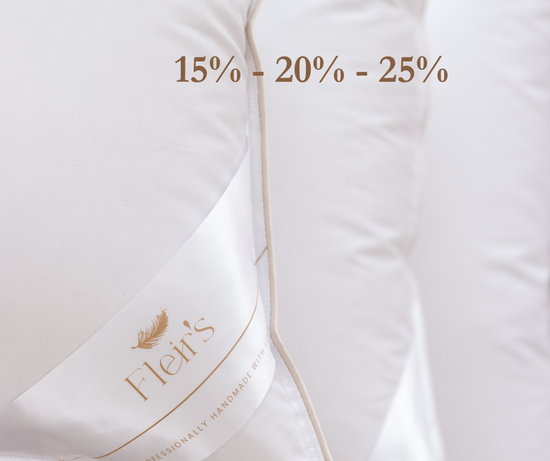 FLEIR'S gebruikt ganzendons met minstens 70% dons.
